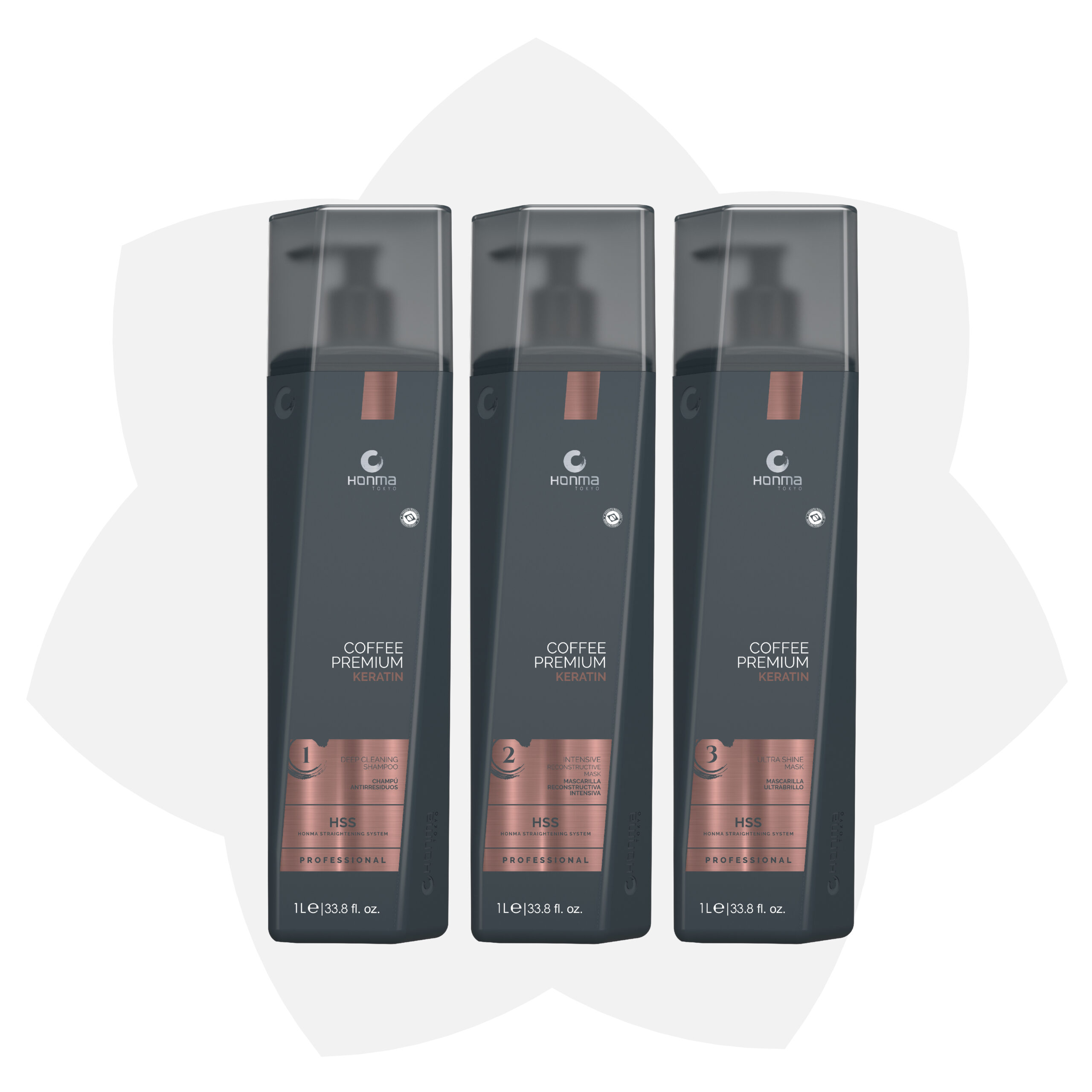 Professional Line Coffee Premium de Honma Tokyo es un innovador sistema de reconstrucción capilar, rico en proteínas y aminoácidos. Tiene en su fórmula una combinación perfecta de extracto de café glicólico y bioactivo marino catiónico asociado con proteína de trigo y queratina, que actúan intensamente en el cabello, reducen la porosidad, proporcionan cuerpo y equilibrio y una superficie más uniforme y alineada, además de cabello hidratado y suave