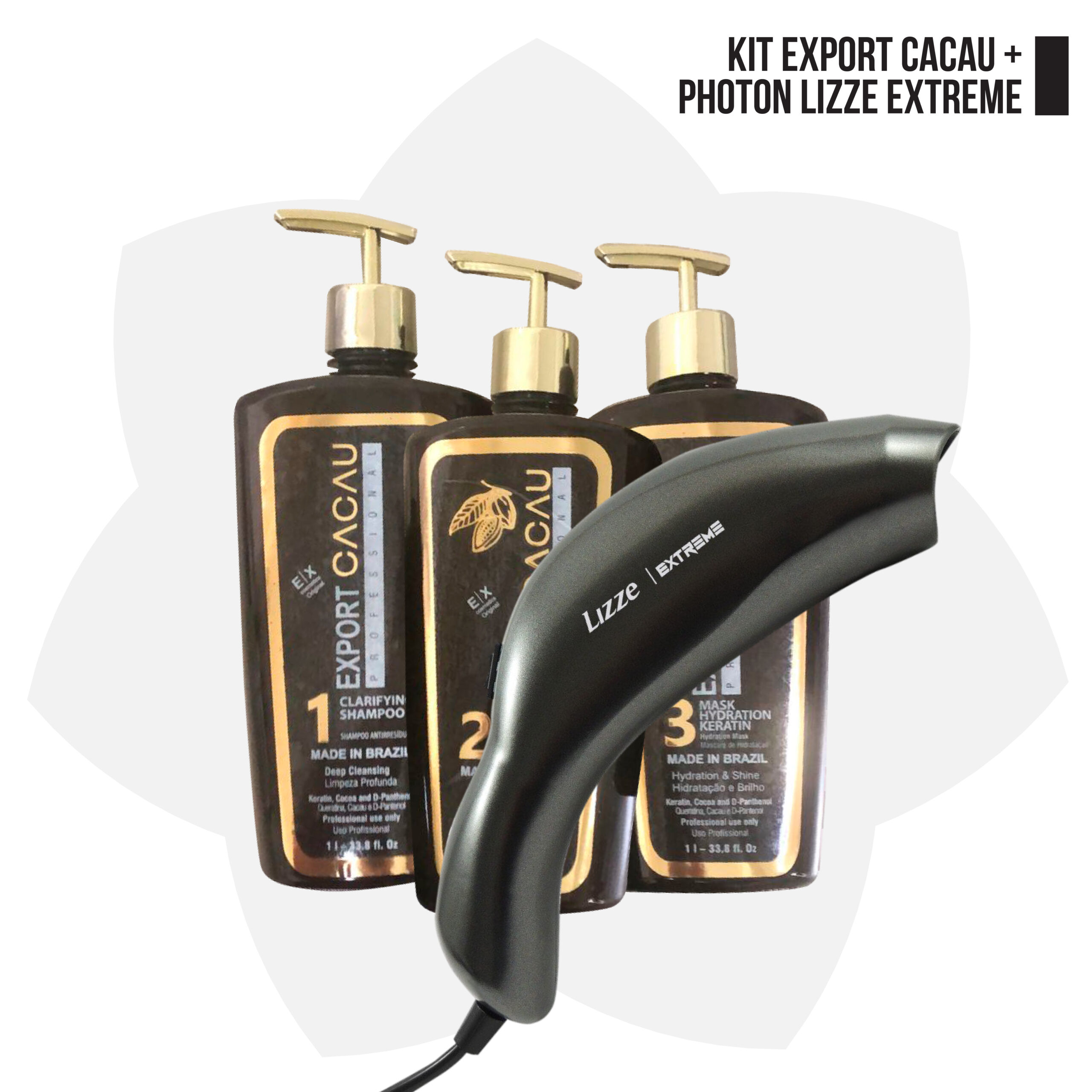 / KIT ALISADO EXPORT CACAU LITRO + PHOTON LIZZE EXTREME DOBLE LUZ